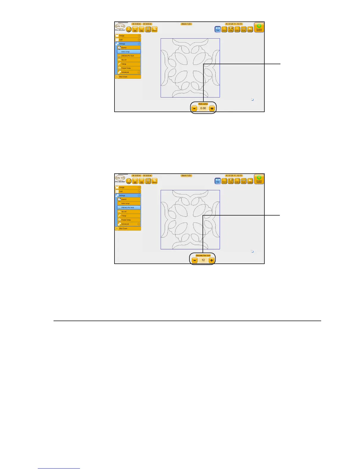 • Select the Auto Jump box to specify the maximum length (in inches) of a jump, or gap in a design