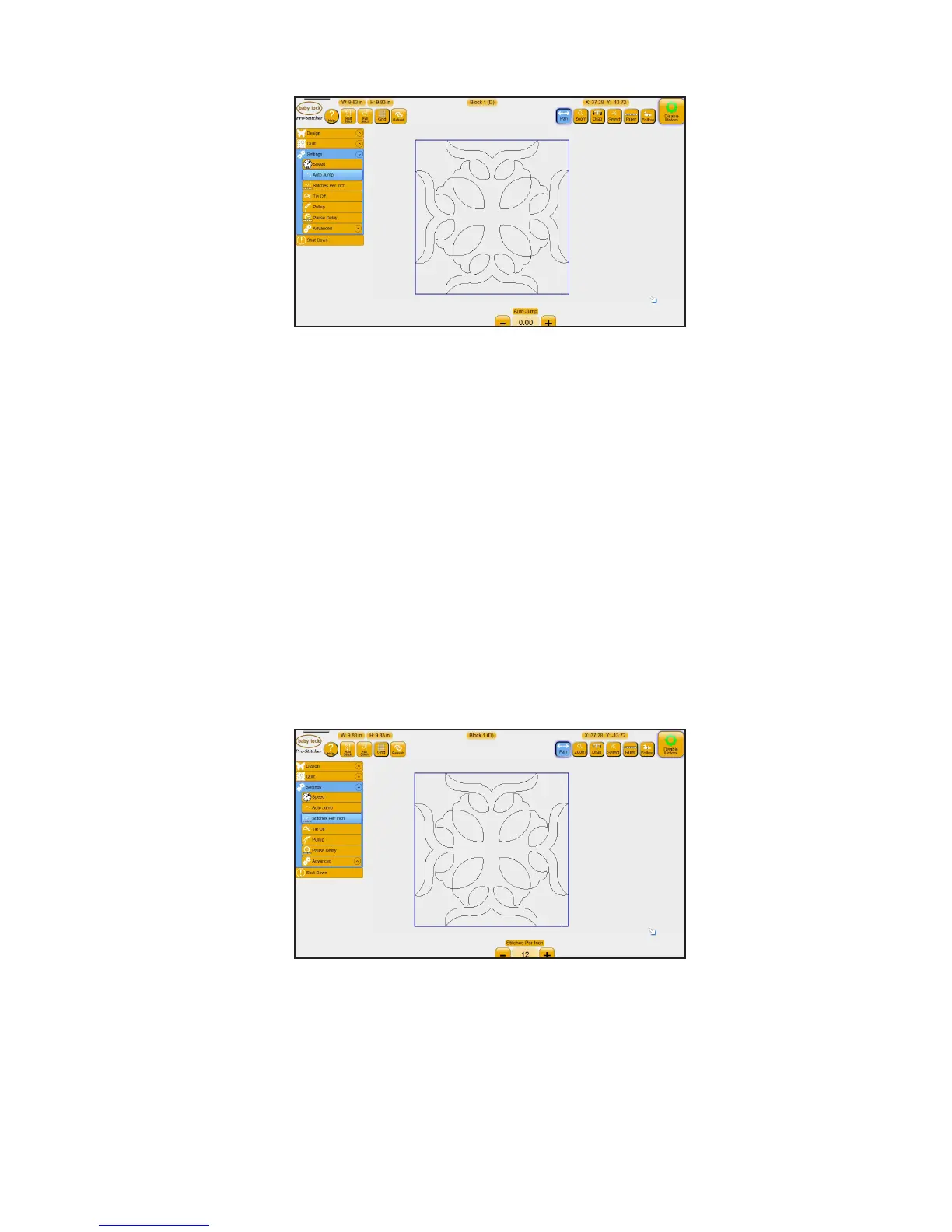 • Select Sengs, Stches Per Inch.