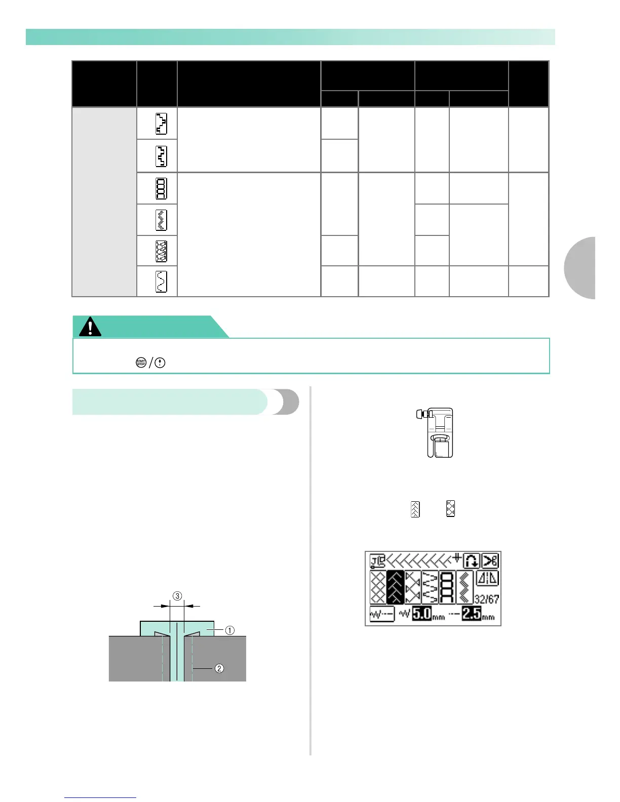 ● Be sure to turn off the main power before replacing the presser foot. Otherwise, injuries may