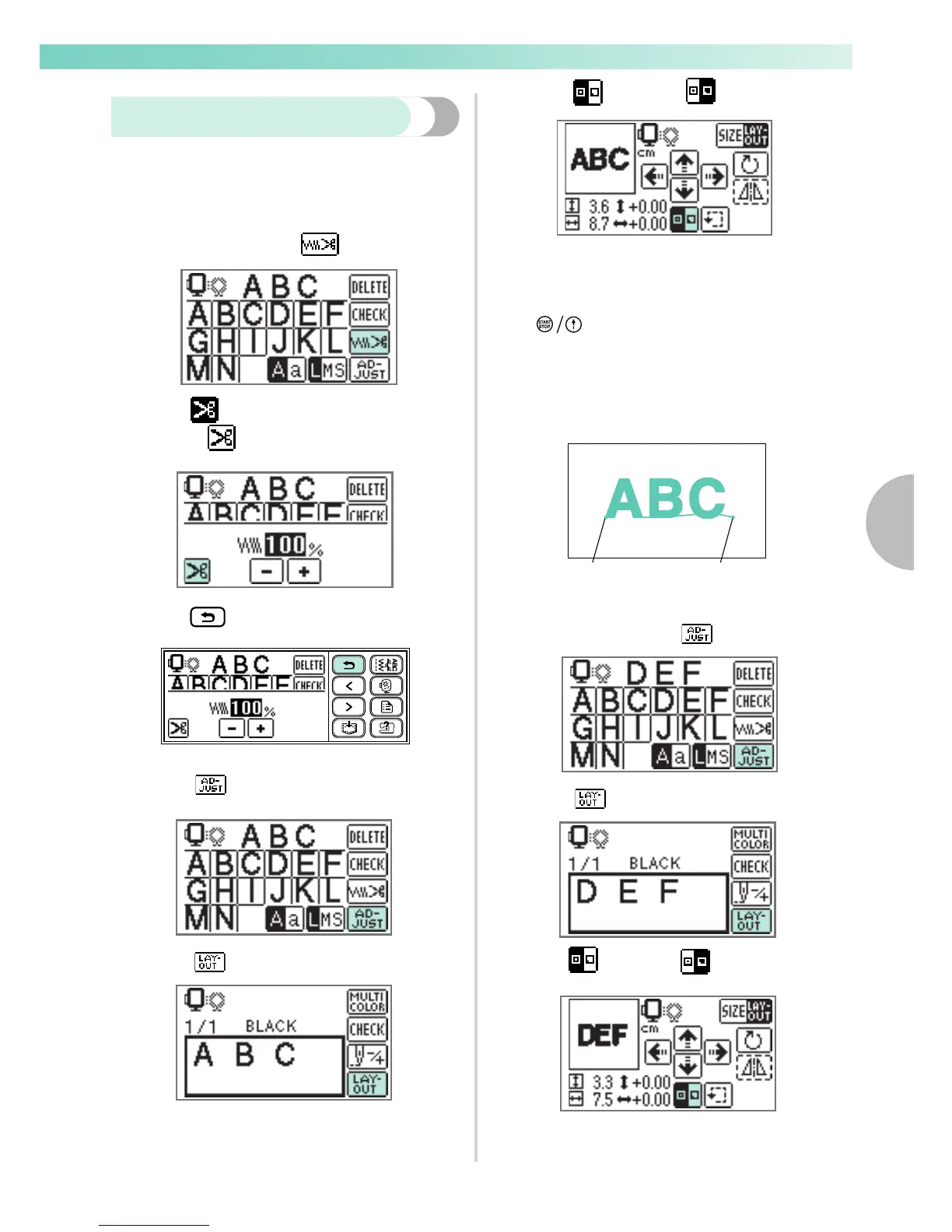 frame, in a position where you can sew "DEF".