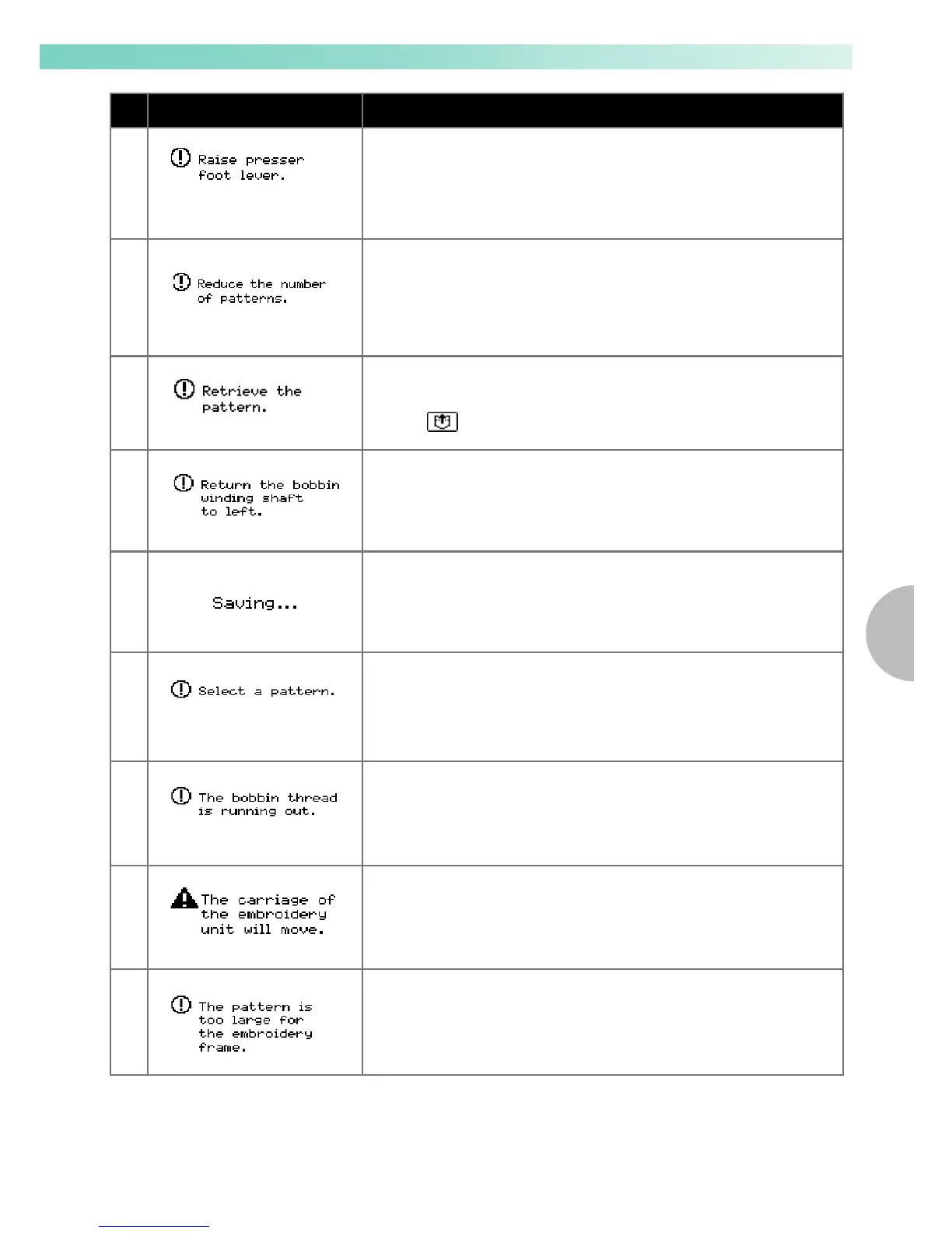 In addition, this message will appear if embroidery patterns containing