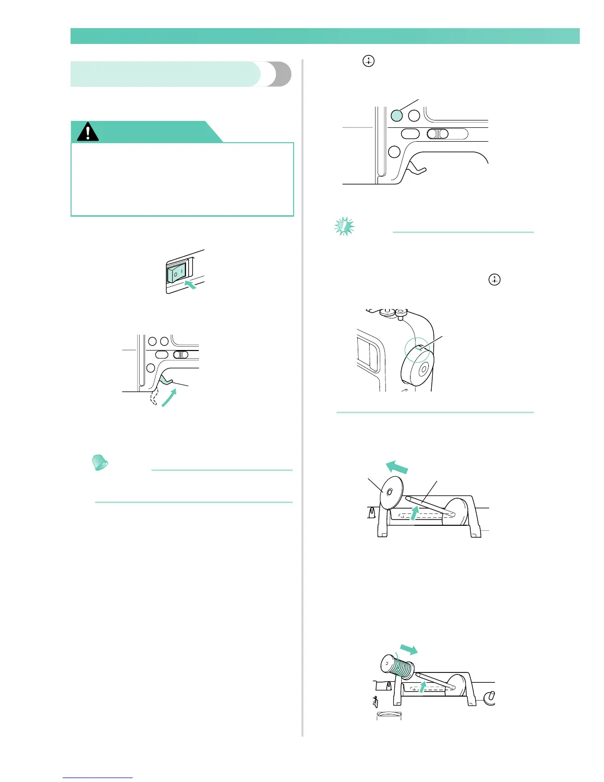 ● When threading the upper thread,