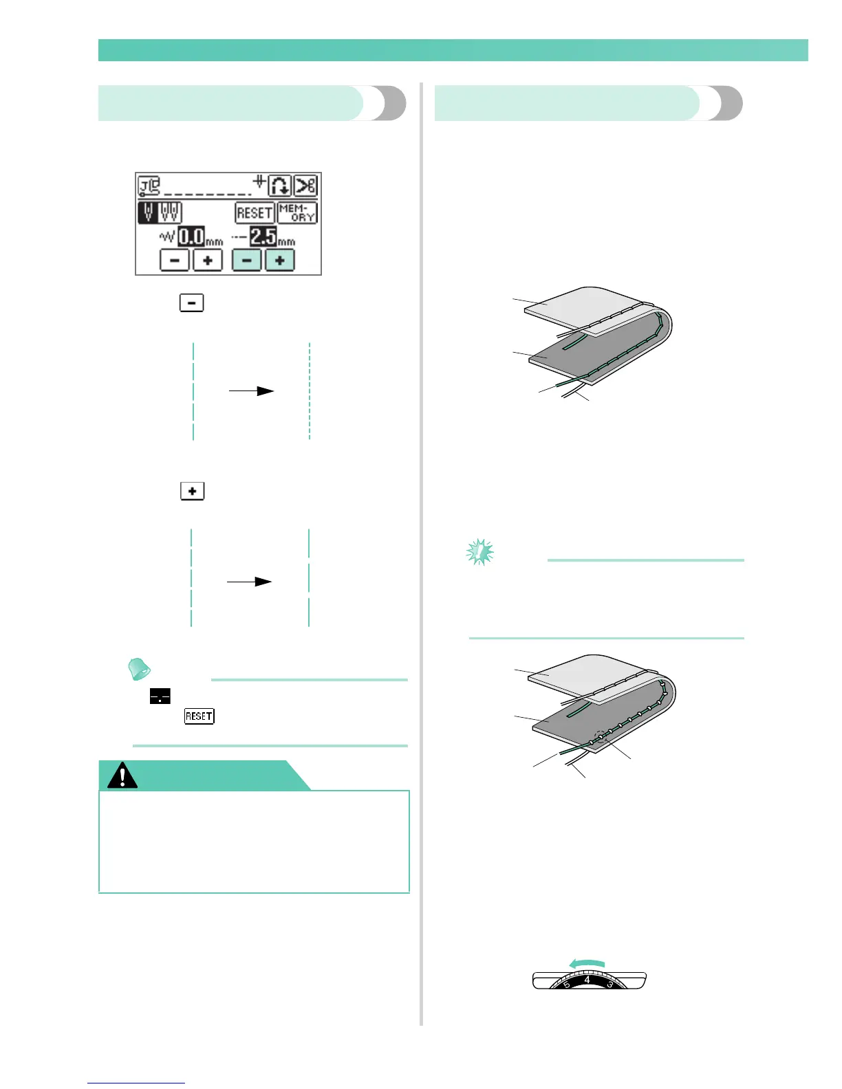 Each press of makes the stitch coarser (longer).