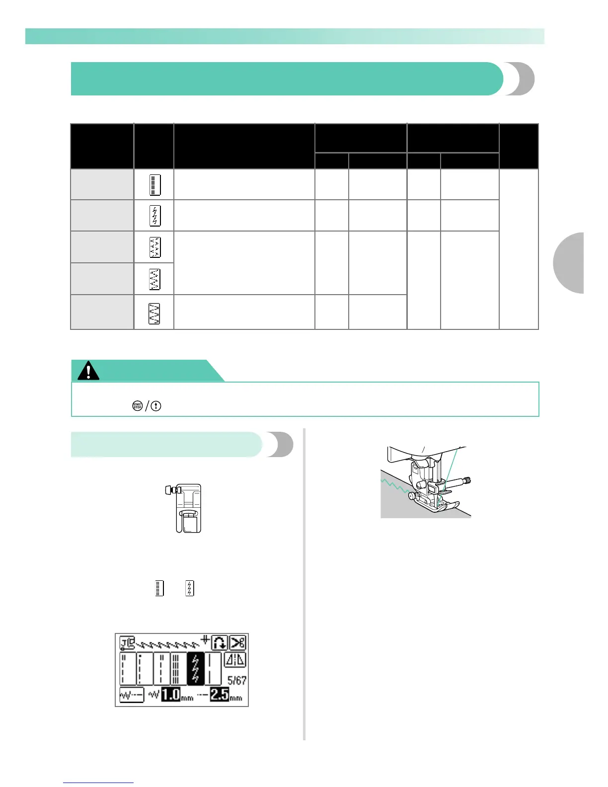 ● Be sure to turn off the main power before replacing the presser foot. Otherwise, injuries may