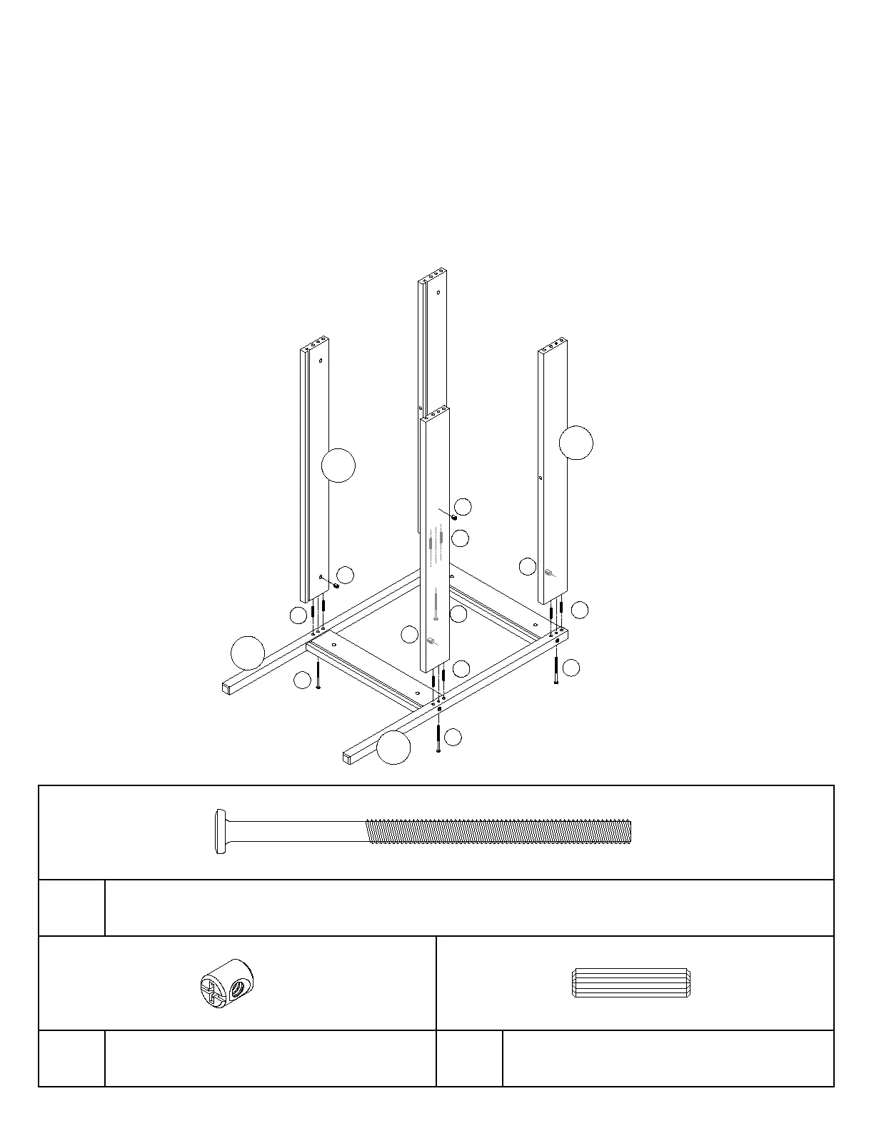 Inserte las tuercas cilíndricas (2) en el riel largo (C y D) como se muestra.