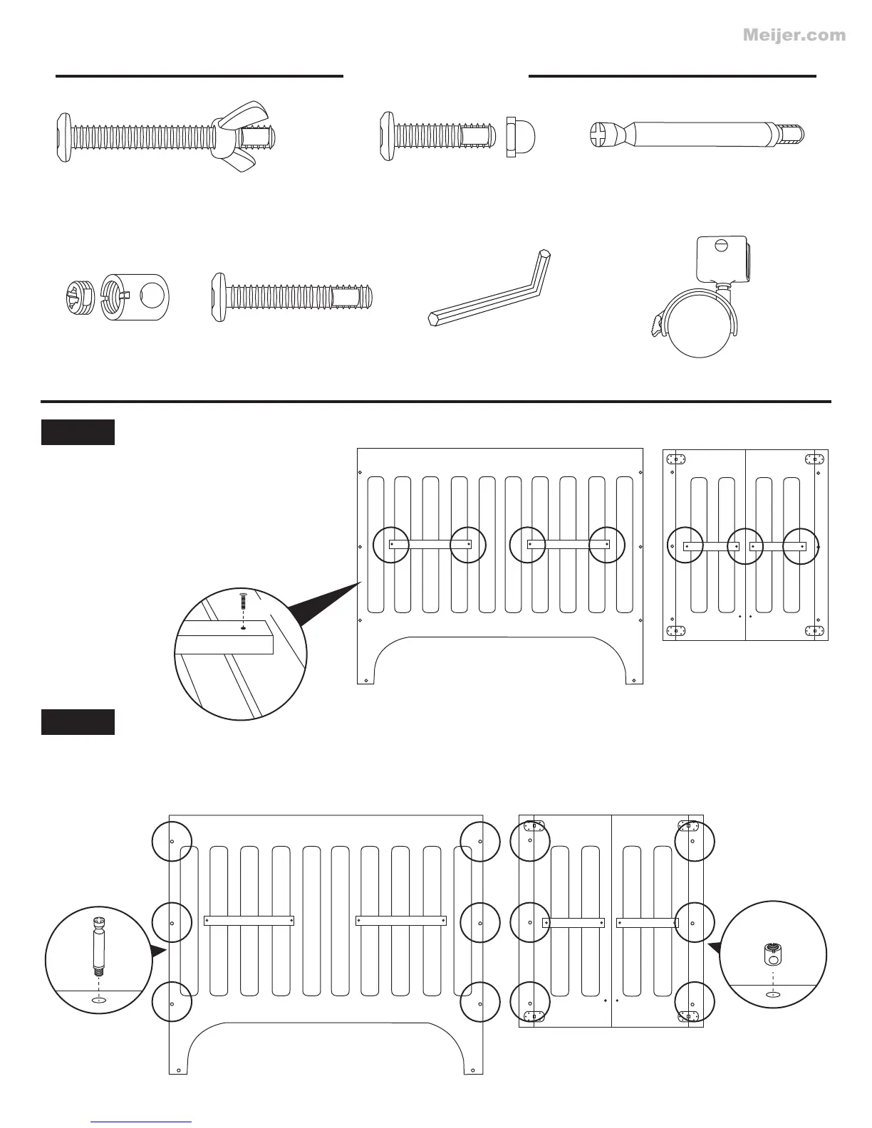 Insert cam bolts (H3) to head panels (A).