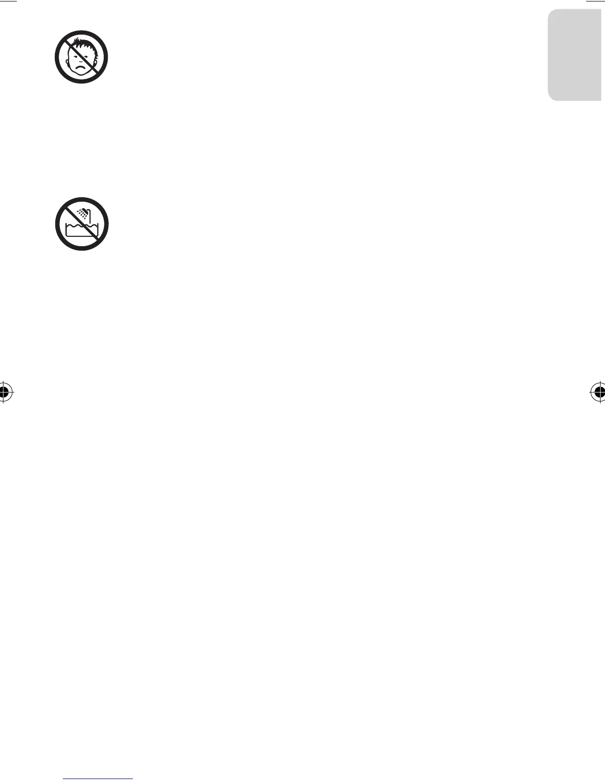 • Læg ikke apparatet i vand eller nogen anden væske.