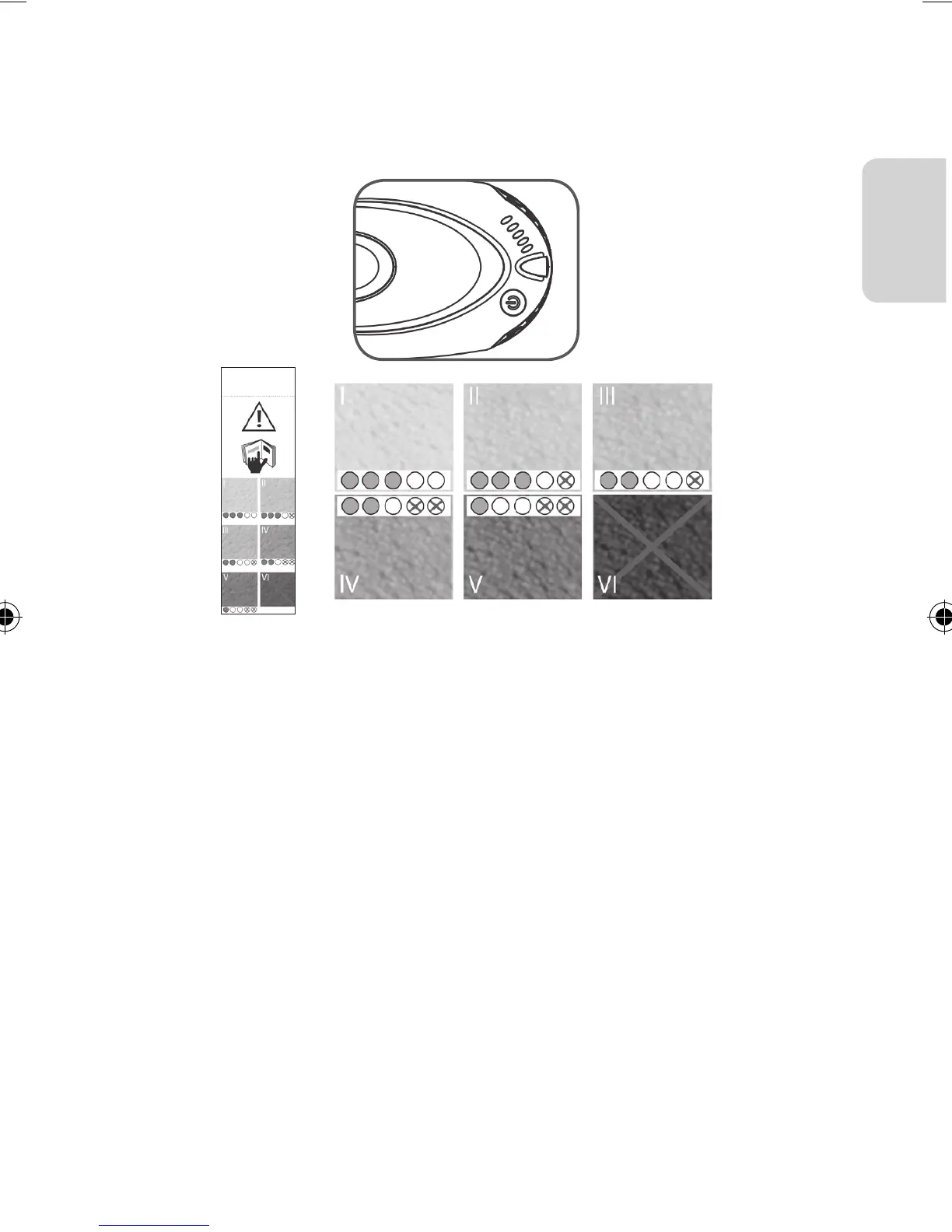 intensitetsväljaren. Intensitetsväljaren visar de olika hudtyperna (I–VI)