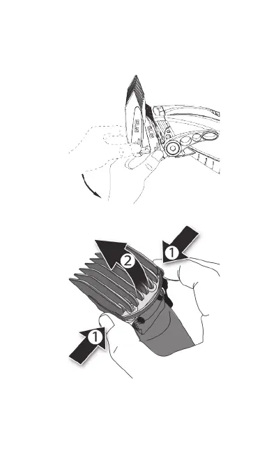 • Anbring først klippeguiden på trimmerens kniv og tryk