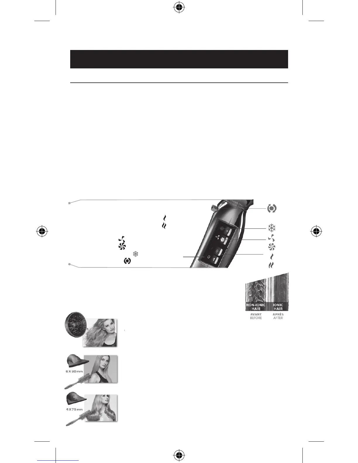 nozzles: 6 × 90 mm (smooth blow-dry) and 4 × 75 mm