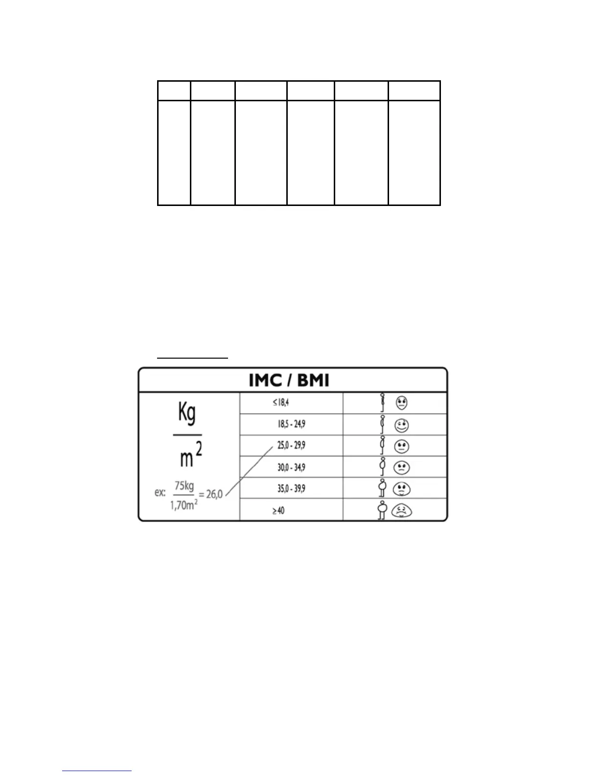 ile hesaplanır: IMC = ağırlık (Kg) / Boy ² (m²). IMC’nin