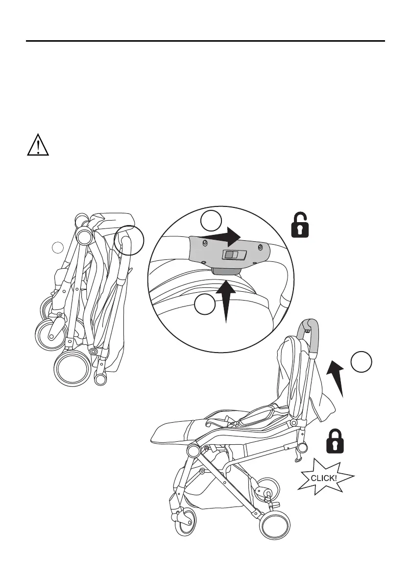 3. And lift up the stroller handle to open.The stroller will “click” when locked into