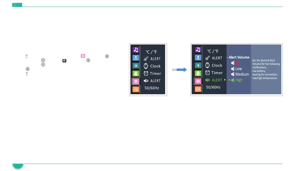 3. Navigate with to select the desired alert volume