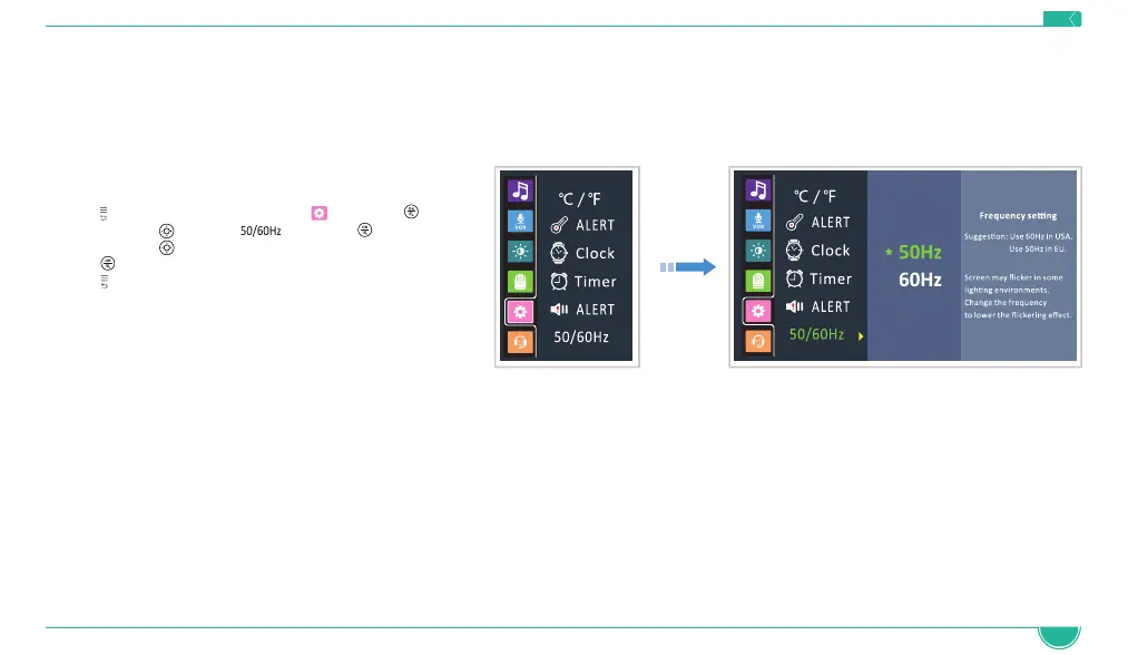 This function allows you to choose desired frequency format 50Hz (for US) or 60Hz (for EU).