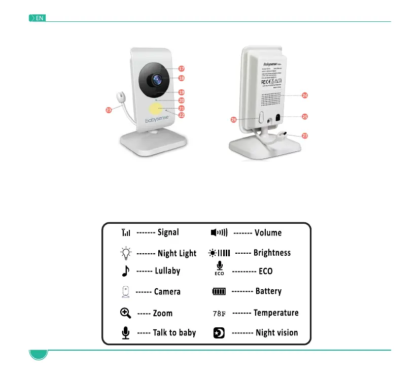 • Connect the Baby Unit (Camera) Power Adapter to the DC-Jack on the back of the Baby Unit.