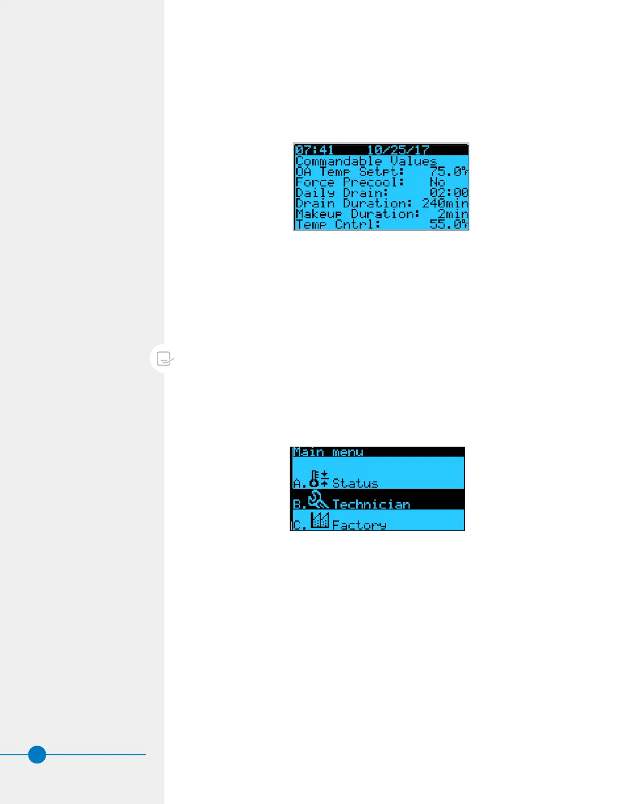 • Factory: This menu is password protected and only available for BAC factory