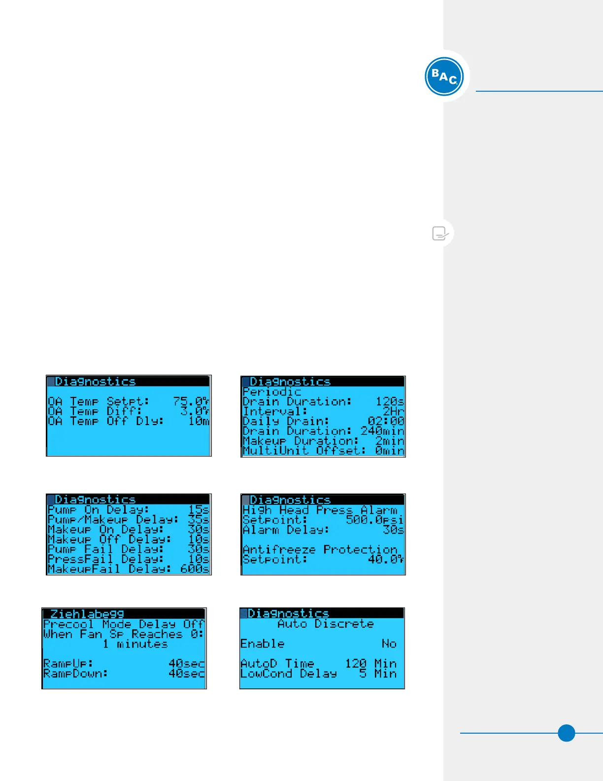 1. Diagnostics: This submenu will display all the current operating conditions of the unit