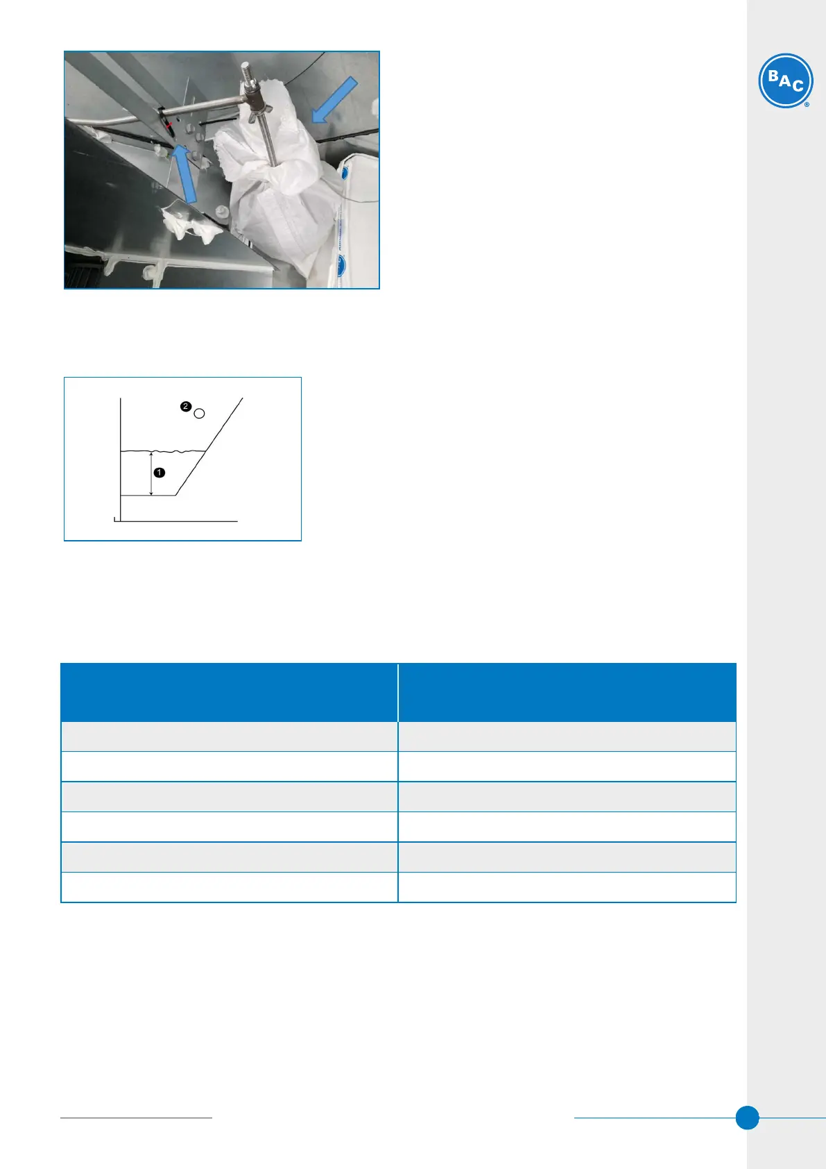 Operating heights for the evaporative cooling equipment are indicated in the tables below: