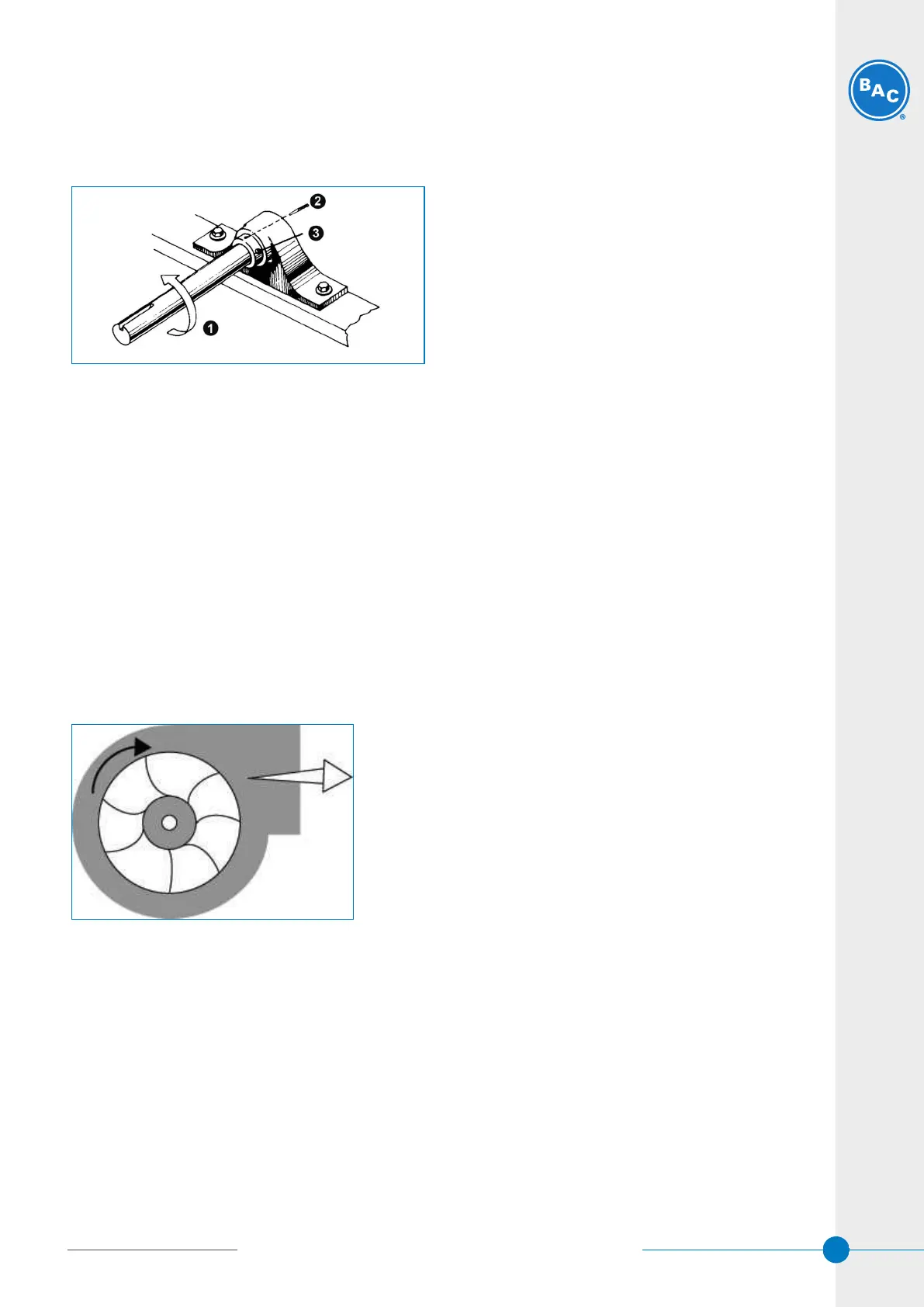 Fans must rotate without obstruction and both fans and pumps must rotate in the correct direction, which is