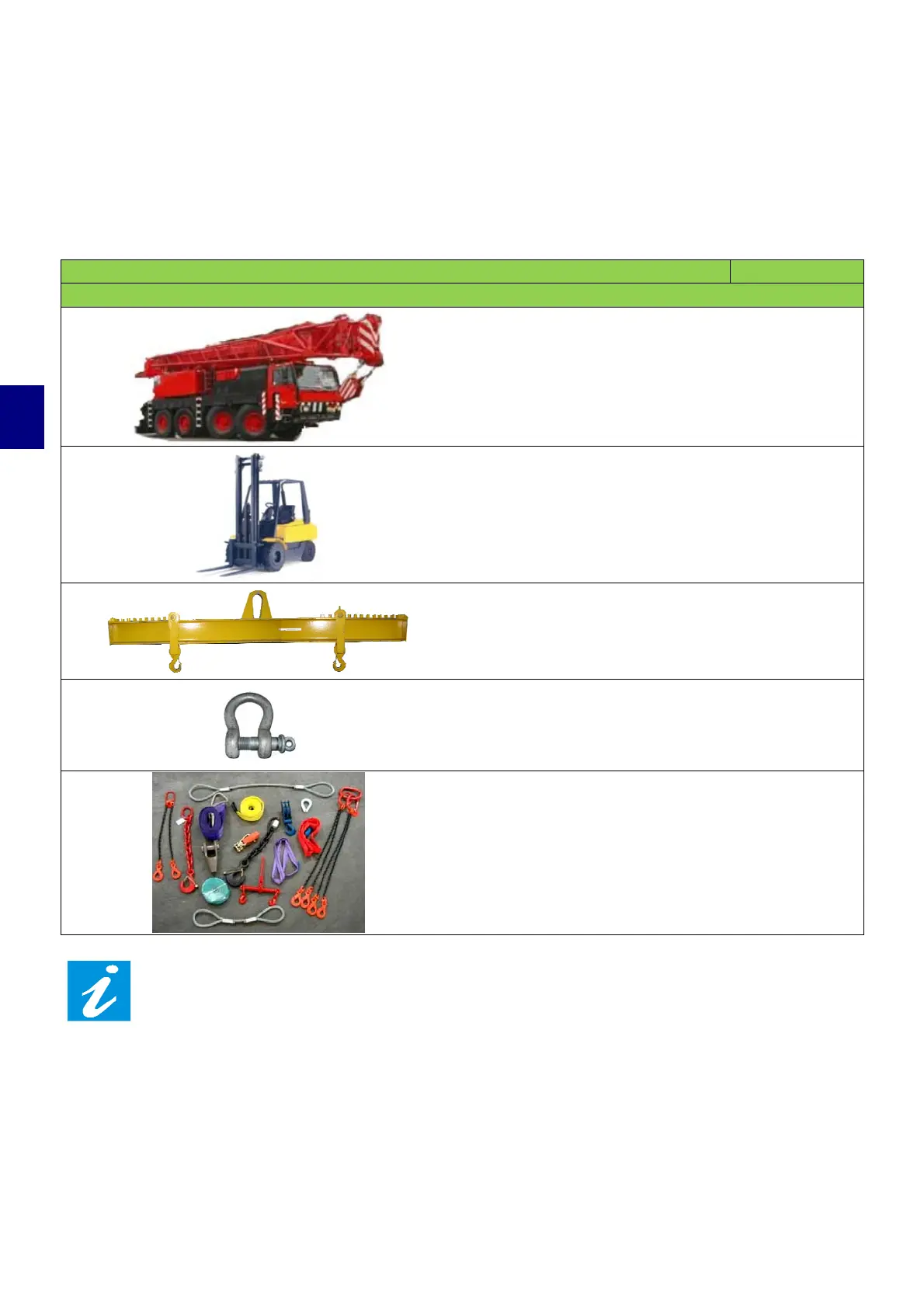 For handling loads and installing the machine it is necessary to have the equipment listed in the following
