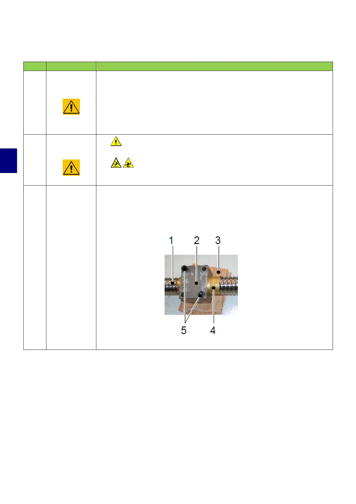 • Wind a part of the ball screw (1) with a copper sheet (4) to protect it.