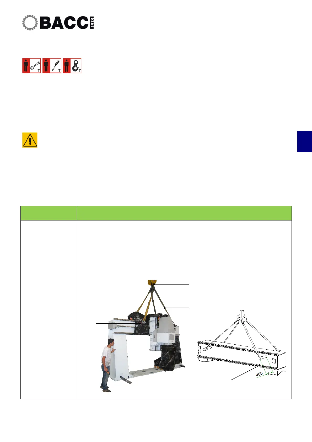 Machine hoisting and handling equipment that must be provided by the end user customer are: