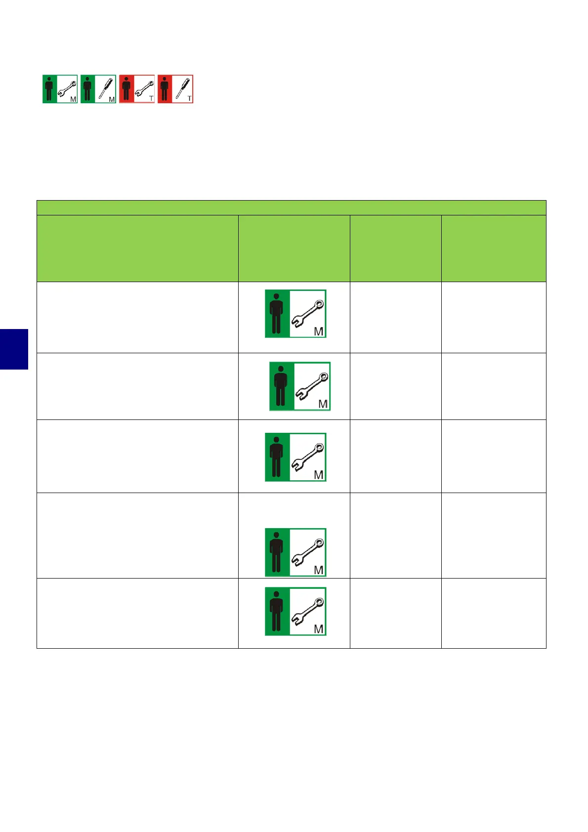 The table below contains all the machine maintenance requirements and specifies the maintenance