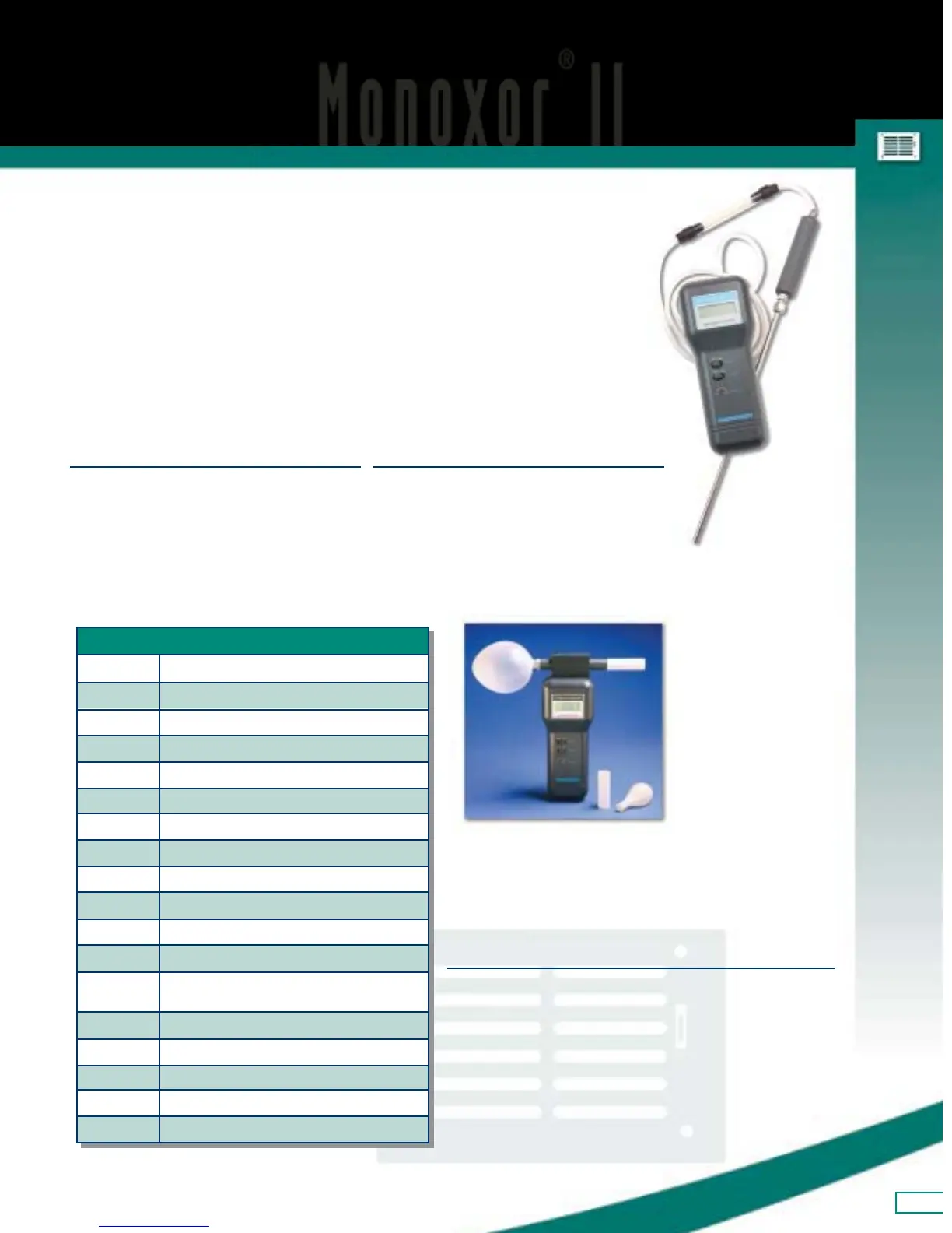 • Backlit, digital display of CO with conversion chart for % COHb