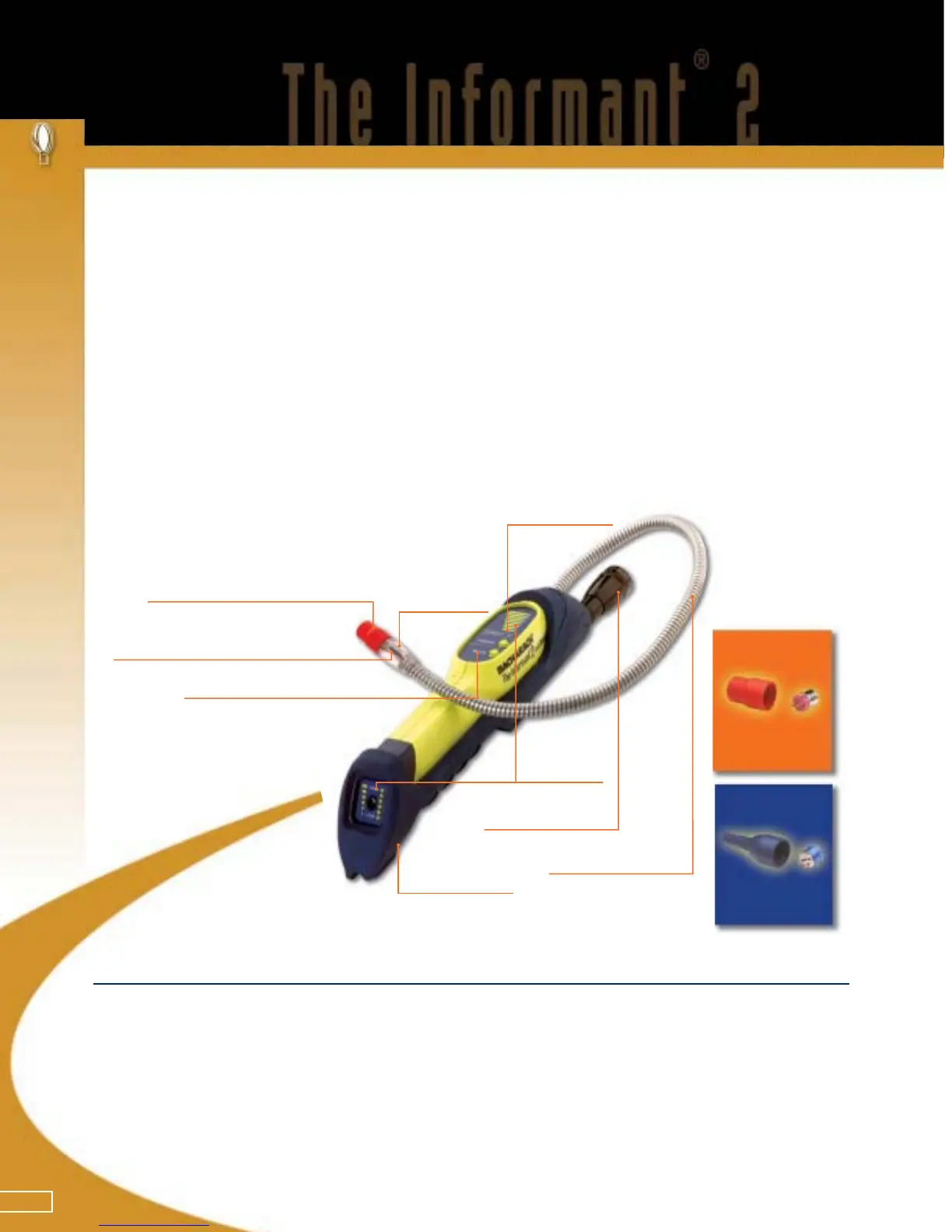where high levels of background vapors or refrigerants are present. The refrigerant sensor tip is finely tapered to a 0.2”