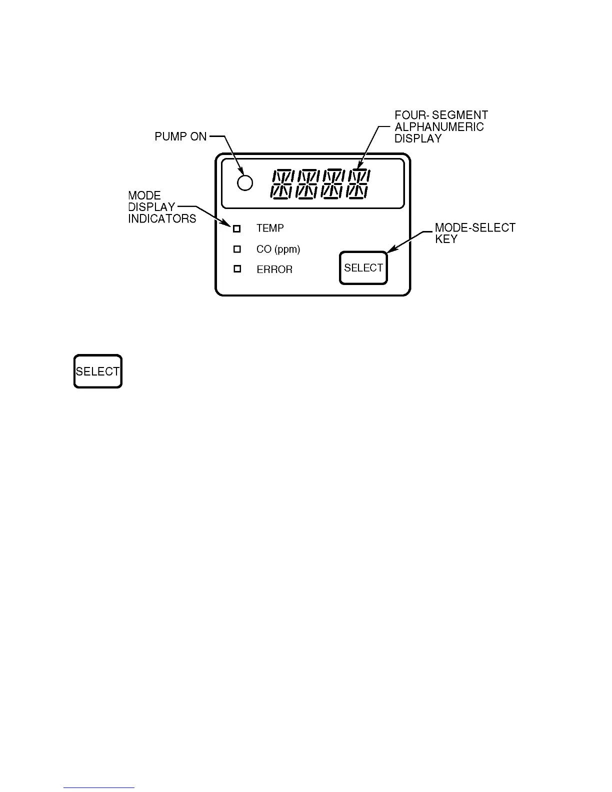 Press to show TEMP, CO (ppm), or ERROR information on the