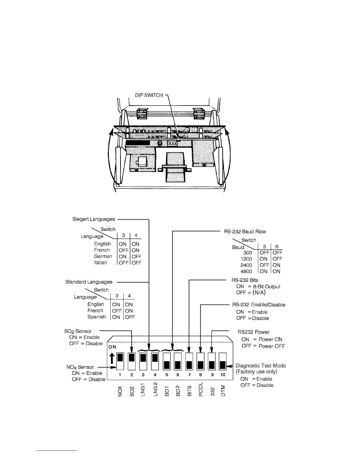 switch to ON. Note, however, the language and baud rate settings