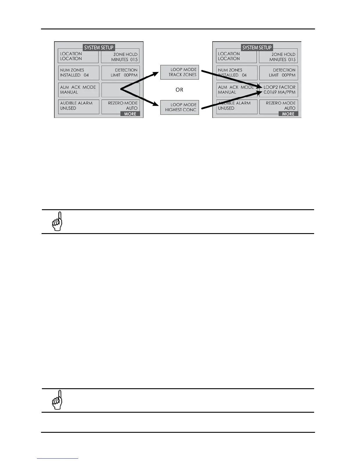 2. Use the UP/DOWN cursor keys to select unused, monitor on, evacuate, spill, leak, fault, or alarm.