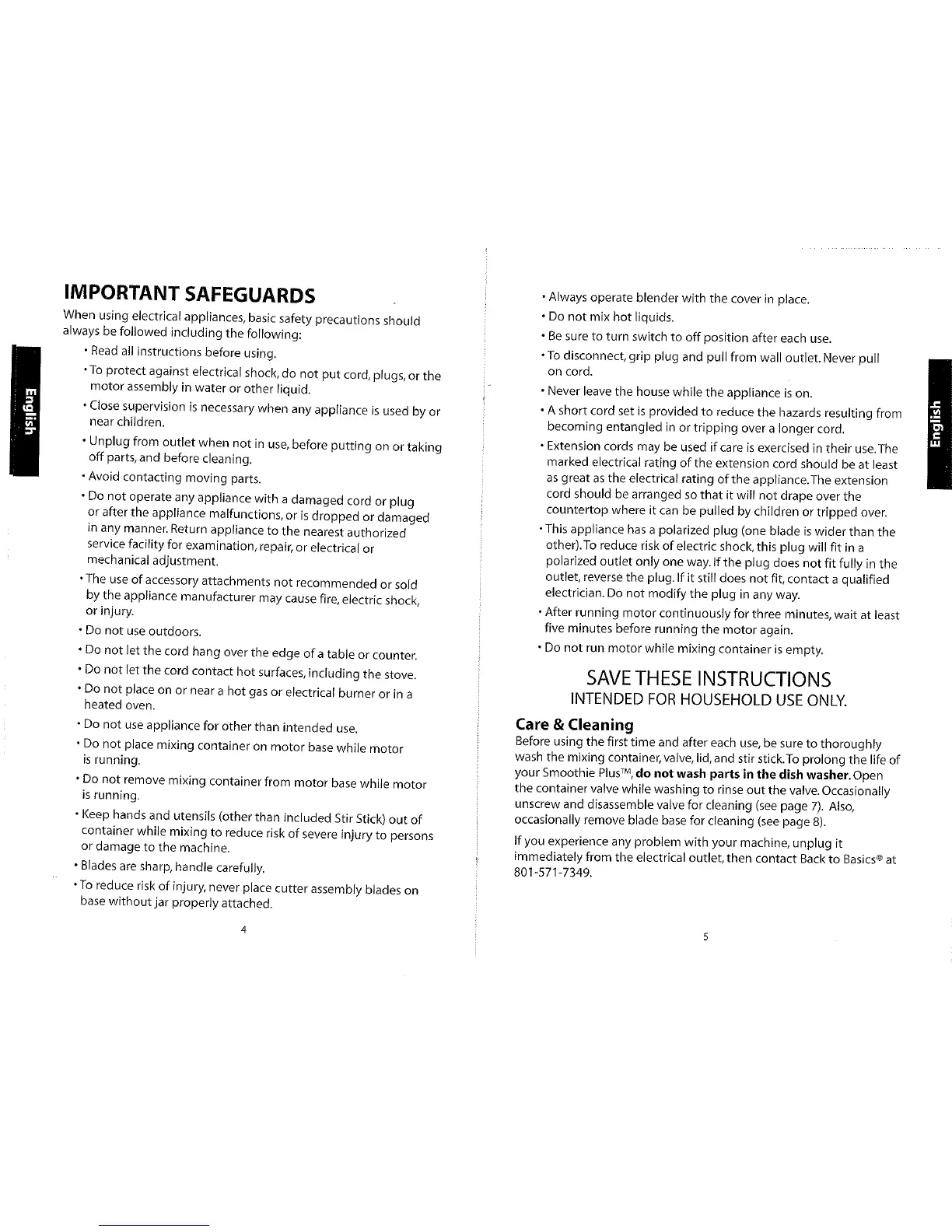 Back to Basics Smoothie Plus - Important Safeguards; Array