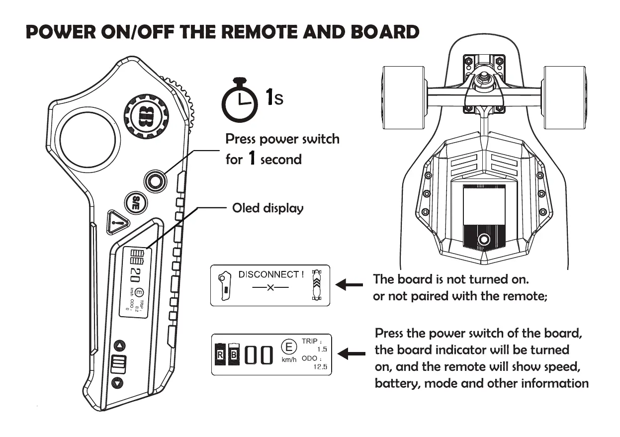 Backfire G3 - Powering the Board and Remote; Powering On;Off Procedure; Connection Status Indicators