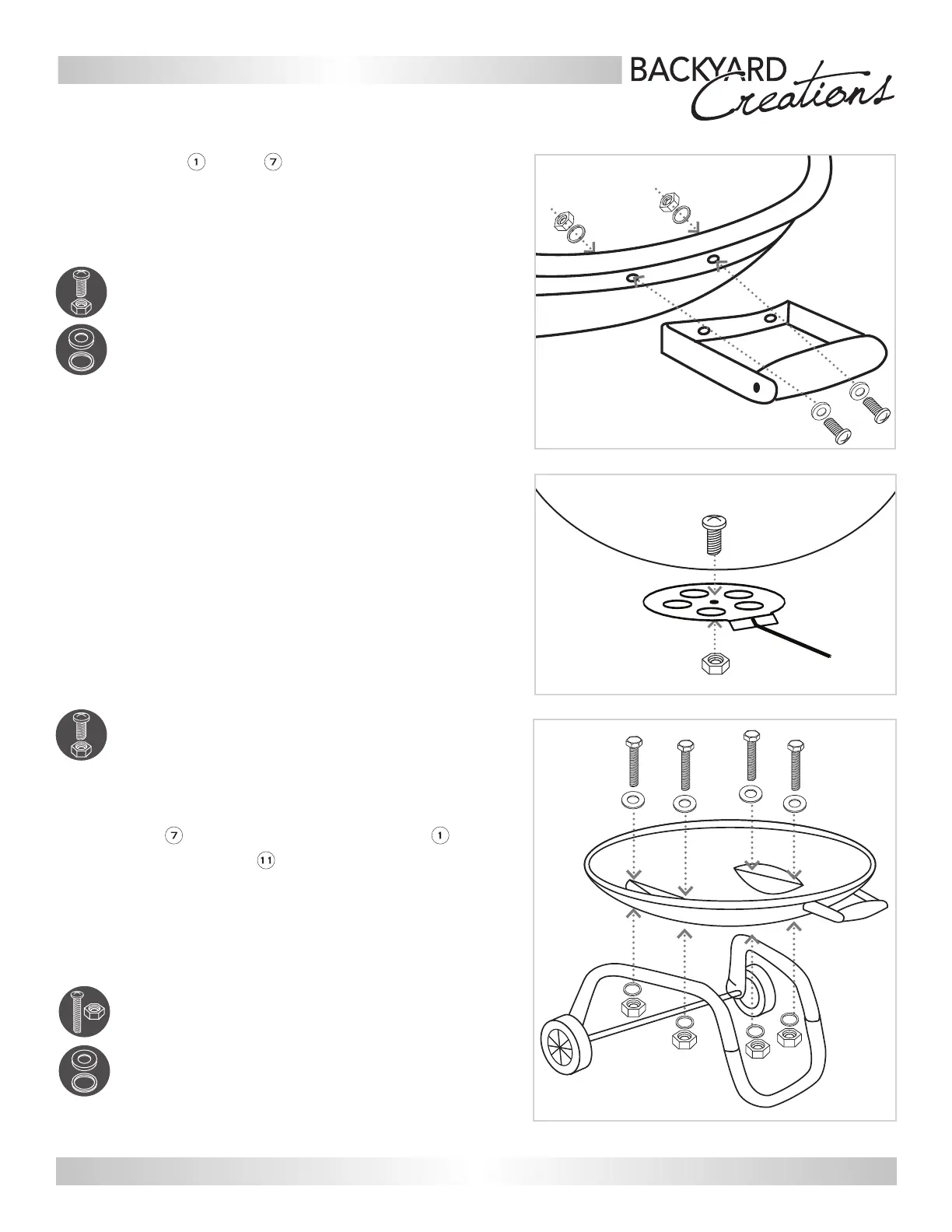 Place Bowl on leg assembly. Be sure the Handle is