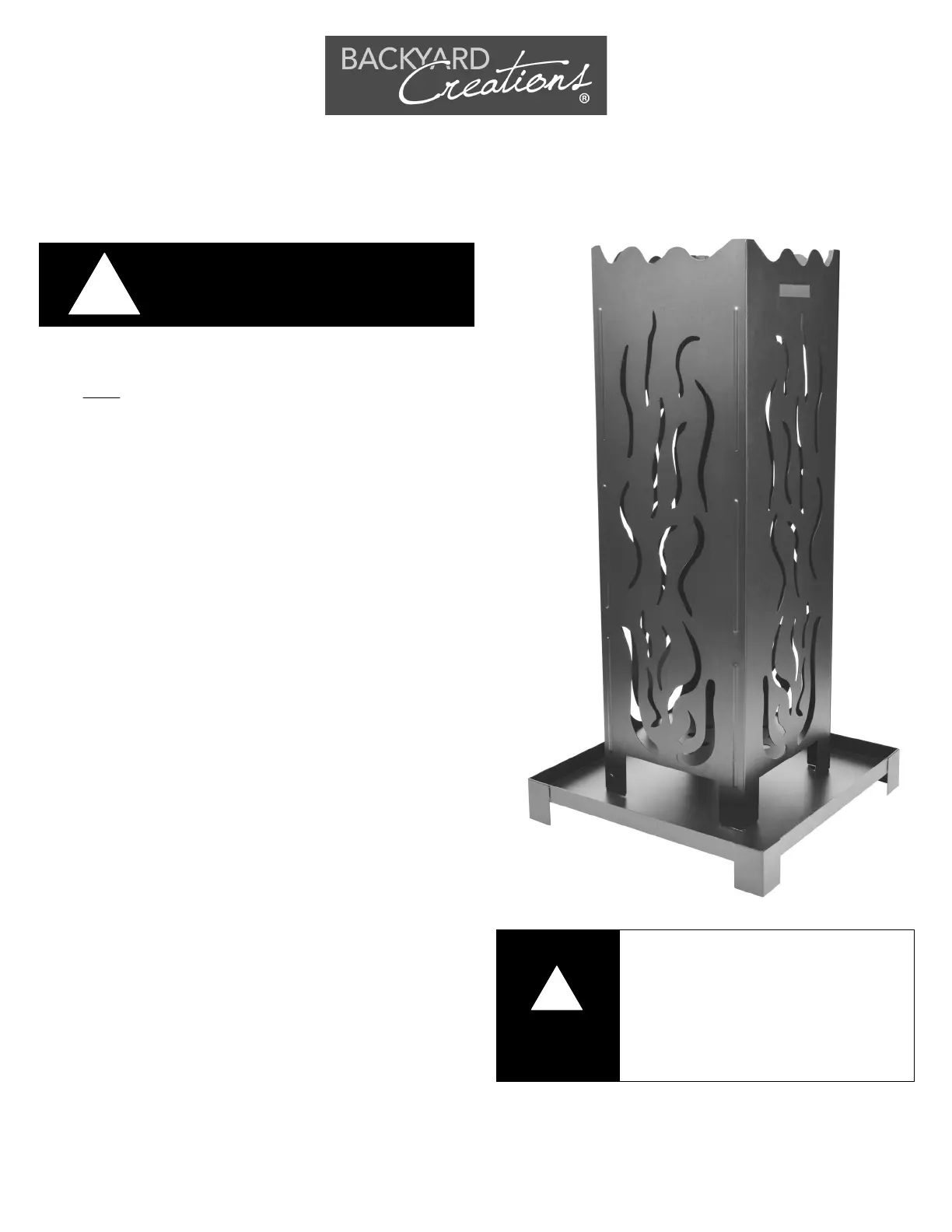 • THE FIRE COLUMN IS FOR OUTDOOR USE ONLY!