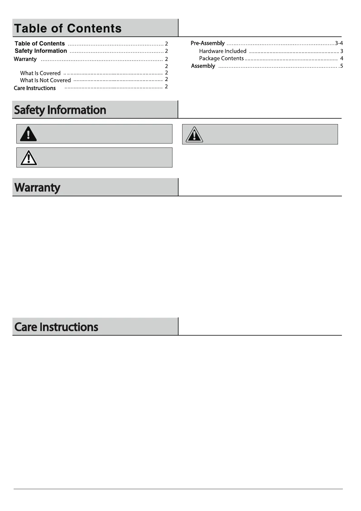 · If exposed to the weather (sun, rain, wind, etc) the furniture will need periodic maintenance.