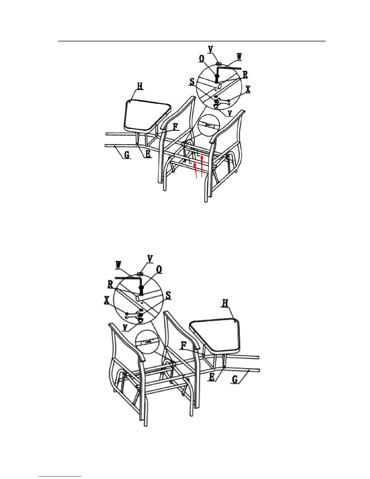 Step 8: Repeat step 7 to attach other side of the table to glider chair as shown above.