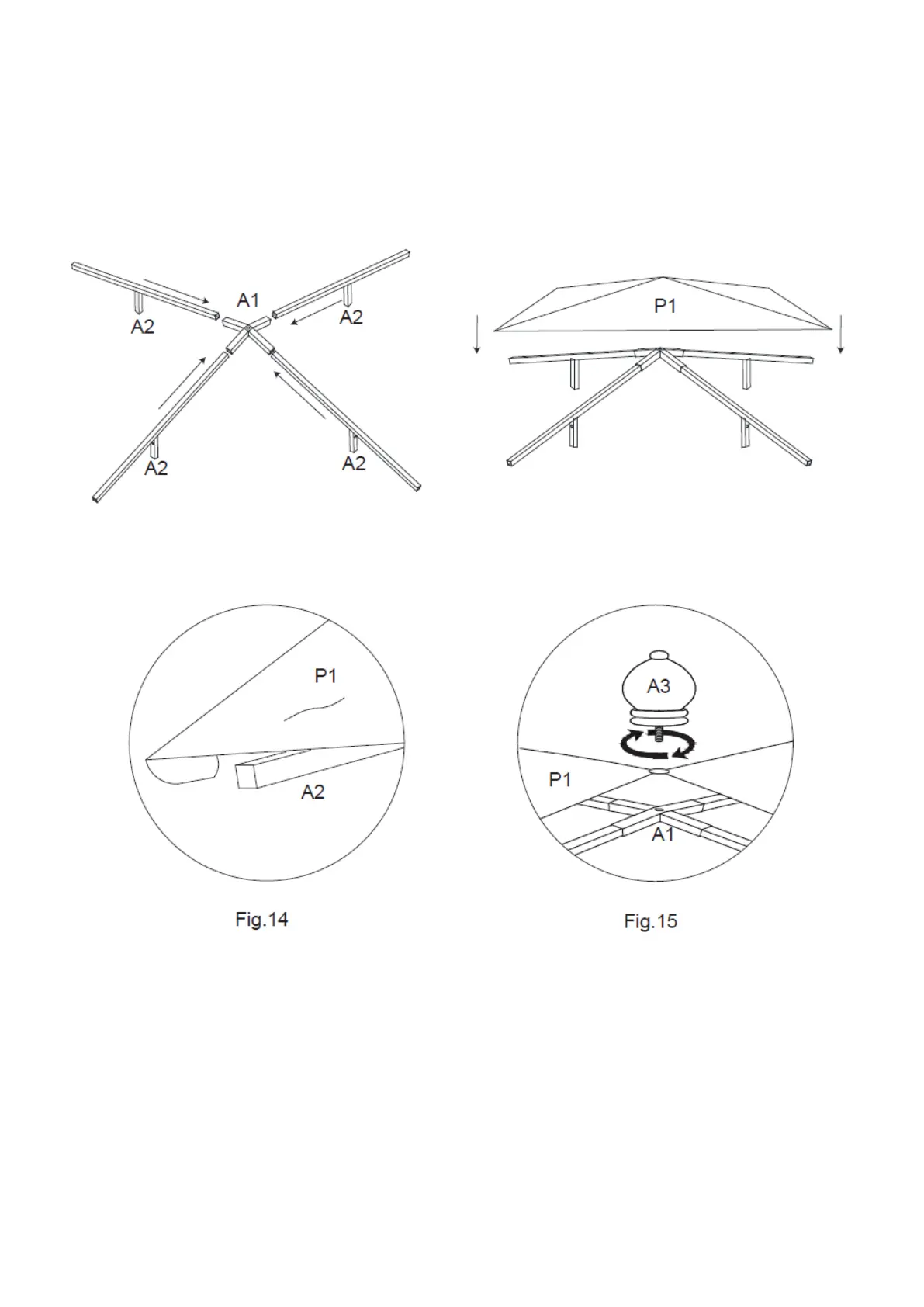 Insert Upper Roof Support (A2) to Upper Roof Connector (A1) until "push button" lock clicks.