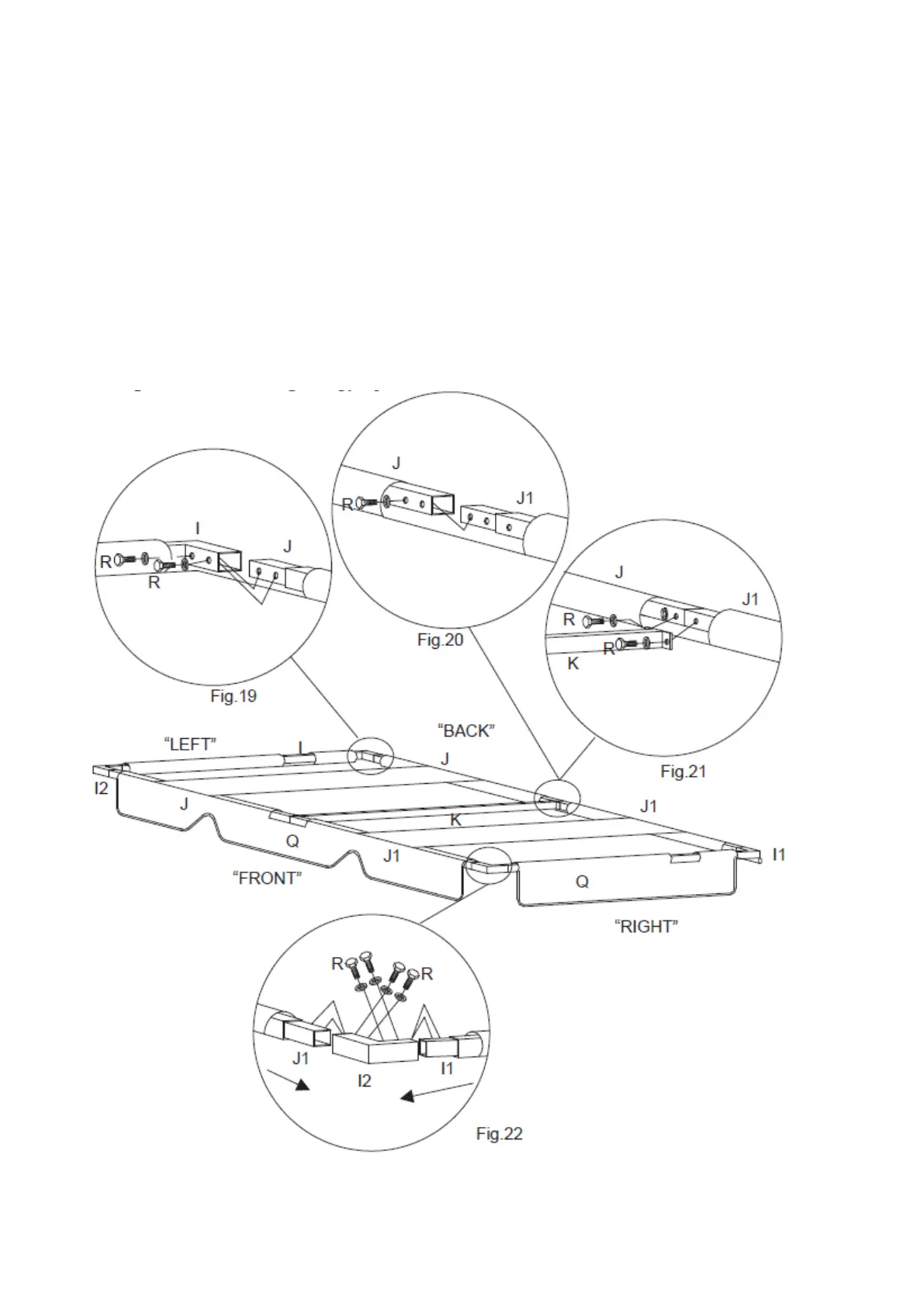 Frame (J1) using Bolts and Washers (R). See Figure 22.