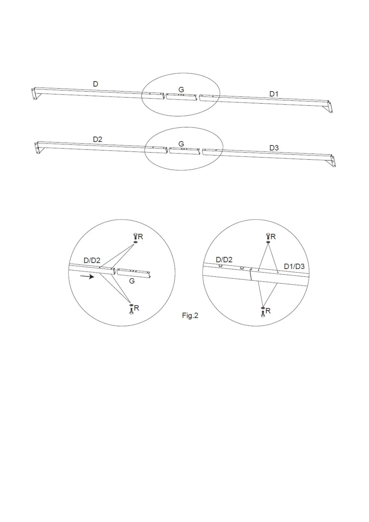Step 2: Insert Cross Beam Center Connector Plate (G) into Cross Beam (D/D1) using Bolt and Washer (R).
