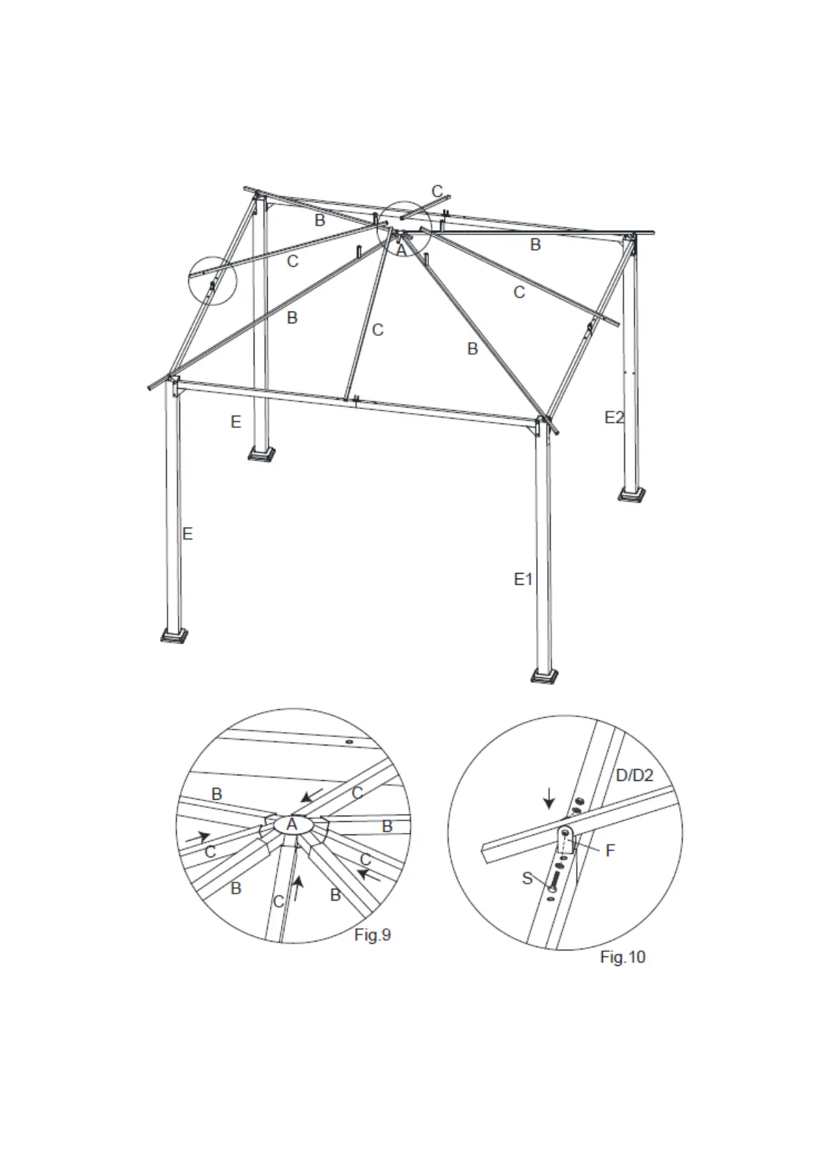 clicks. Attach the opposite end of the Main Roof Side Support (C) to the U-Shaped Connector (F)