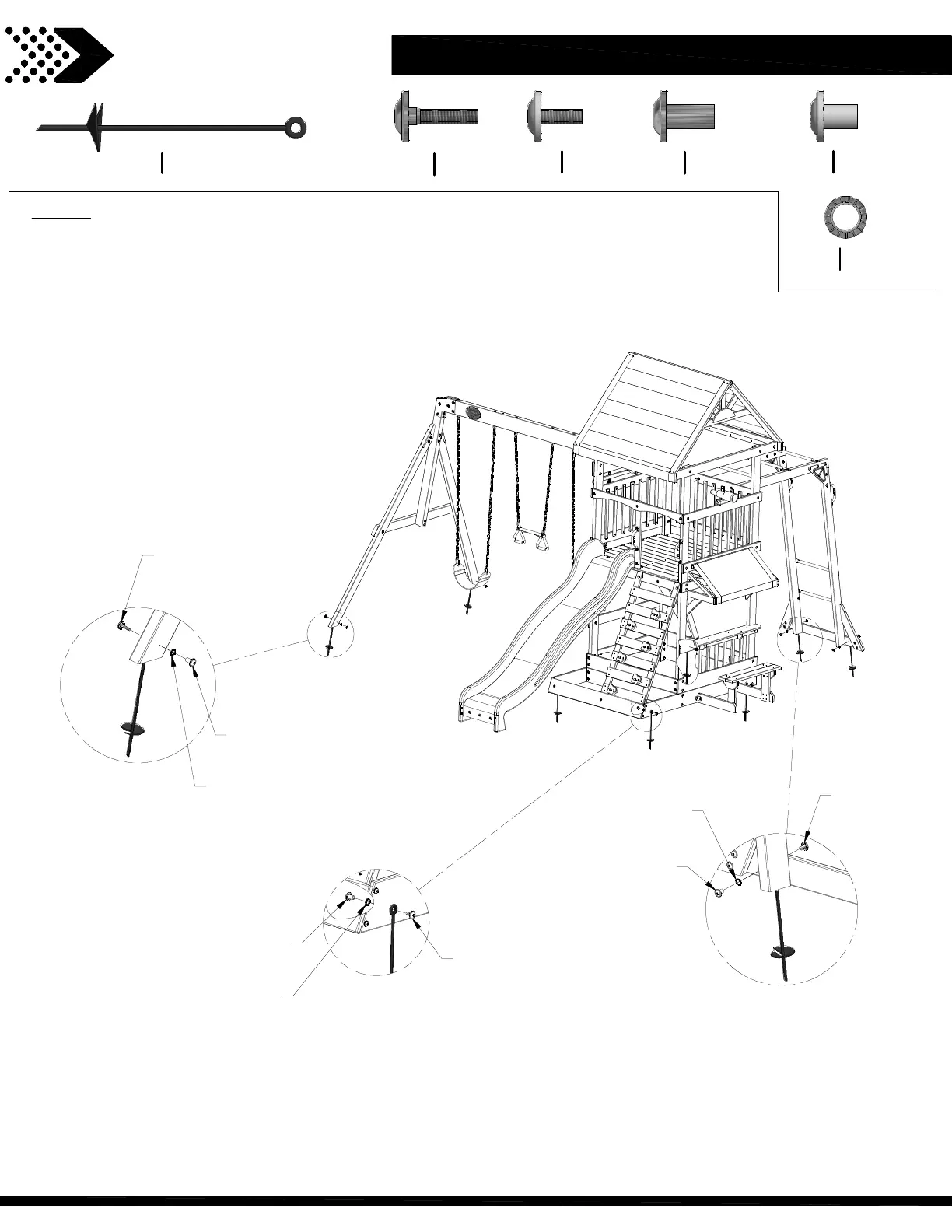 DOUBLE CHECK EVERY BOLT, SCREW AND NUT FOR TIGHTNESS. MAKE SURE EVERY BOARD IS SECURE