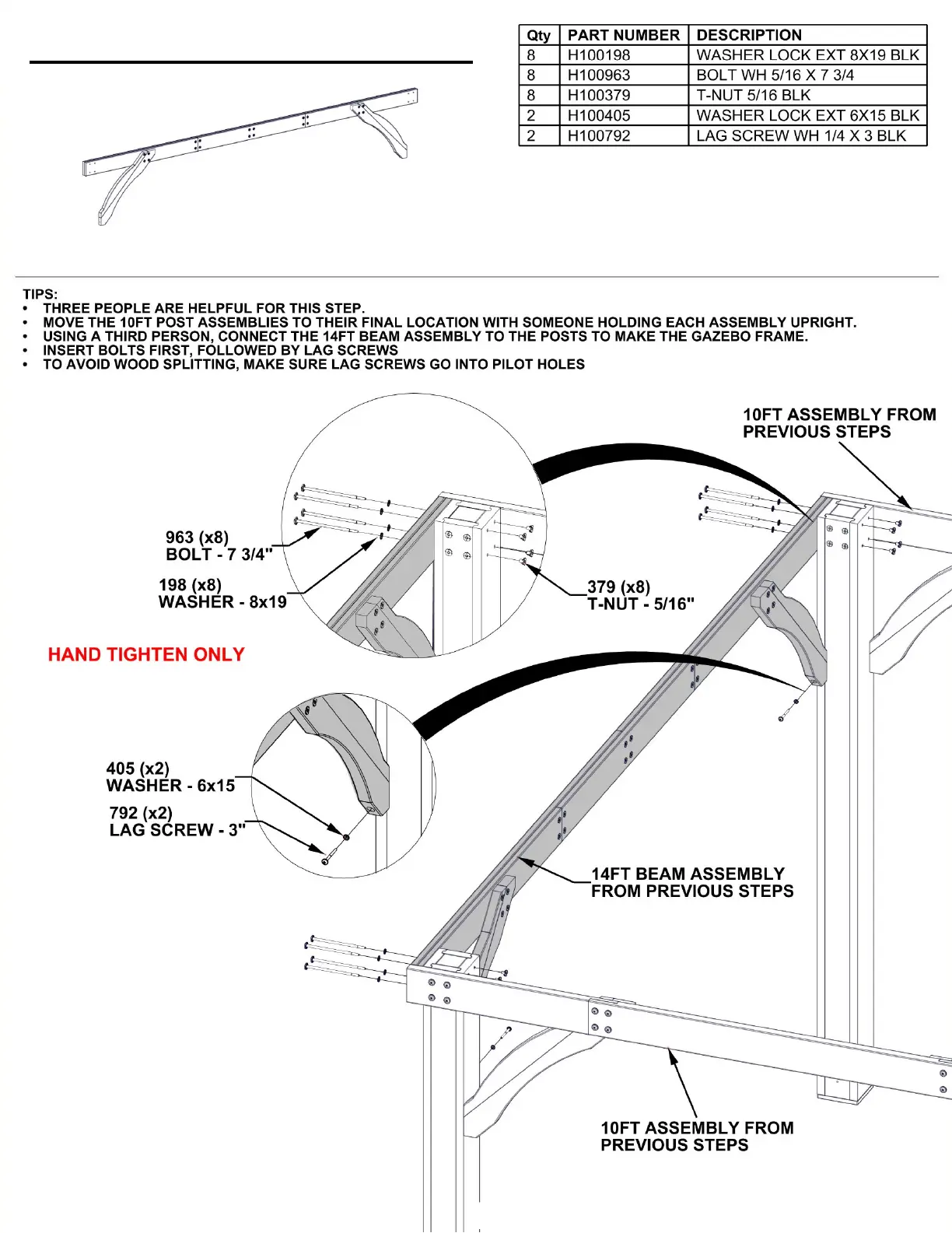 • USING A THIRD PERSON, CONNECT THE 14FT BEAM ASSEMBLY