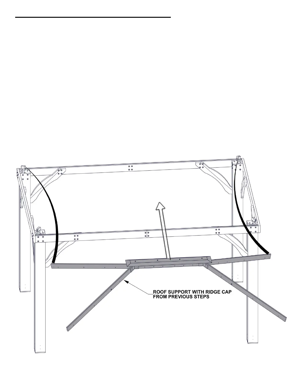 LIFT ROOF SUPPORT UP AND OVER THE 14FT SIDE AND INSERT INTO CORNER POST CLIPS.