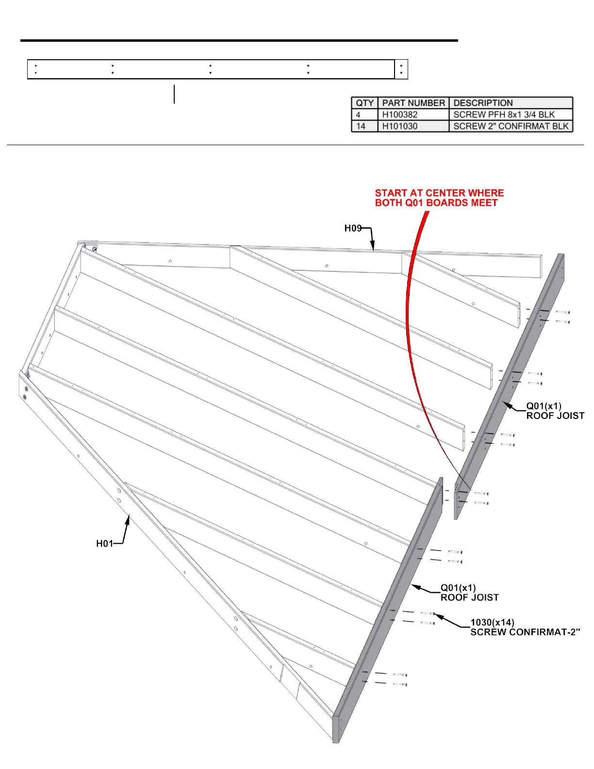 RAFTERS MAY NEED TO BE LOOSENED TO ATTACH Q01 TO H01/H09