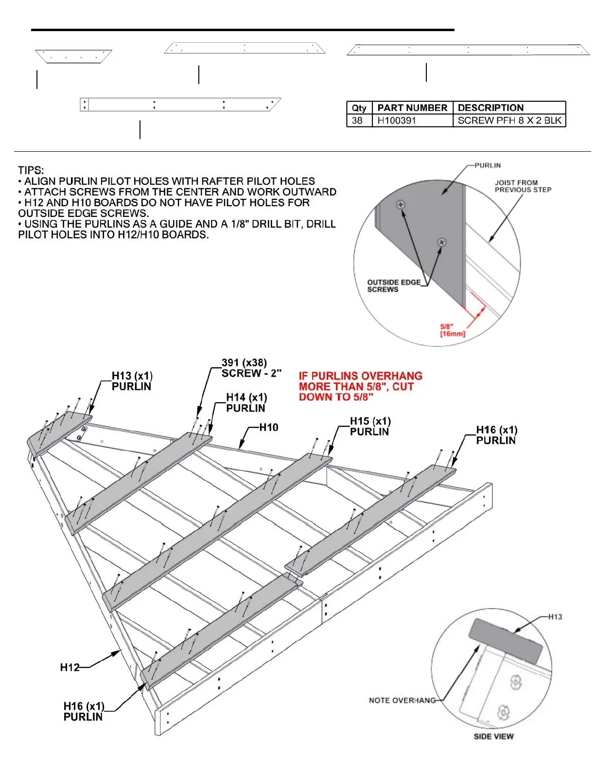 • ALIGN PURLIN PILOT HOLES WITH RAFTER PILOT HOLES