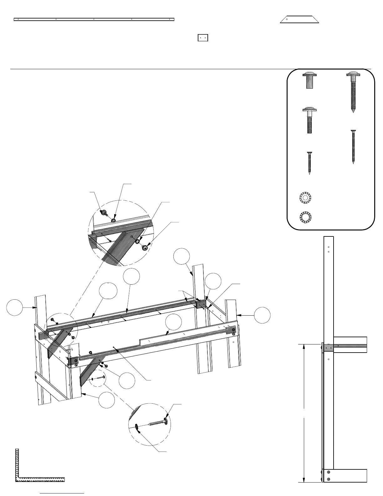 BRACES. USING HARDWARE AS SHOWN THROUGH PRE DRILLED HOLES.
