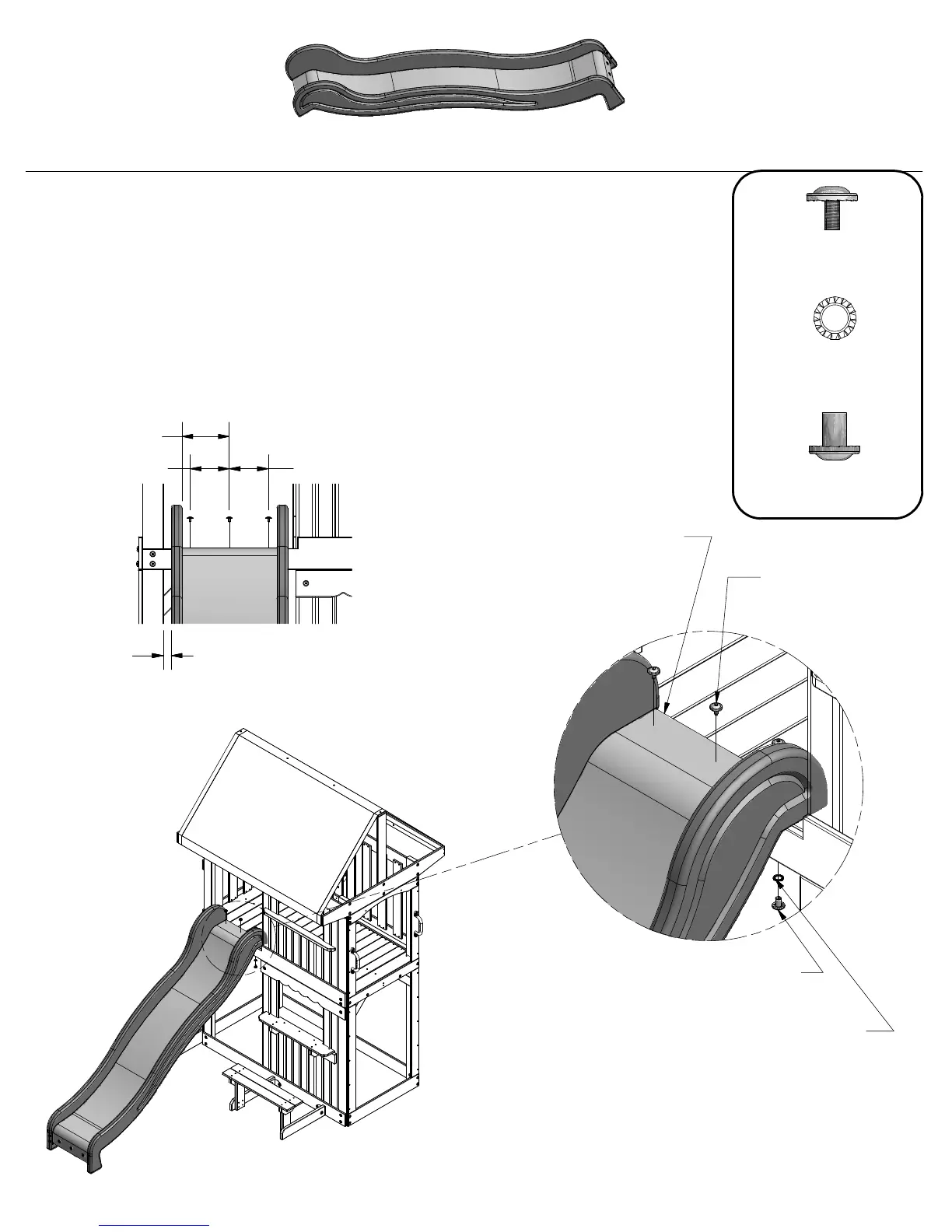ATTACH THE SLIDE ASSEMBLY TO THE DECK USING (3) 1/2" BOLTS, LOCK WASHERS