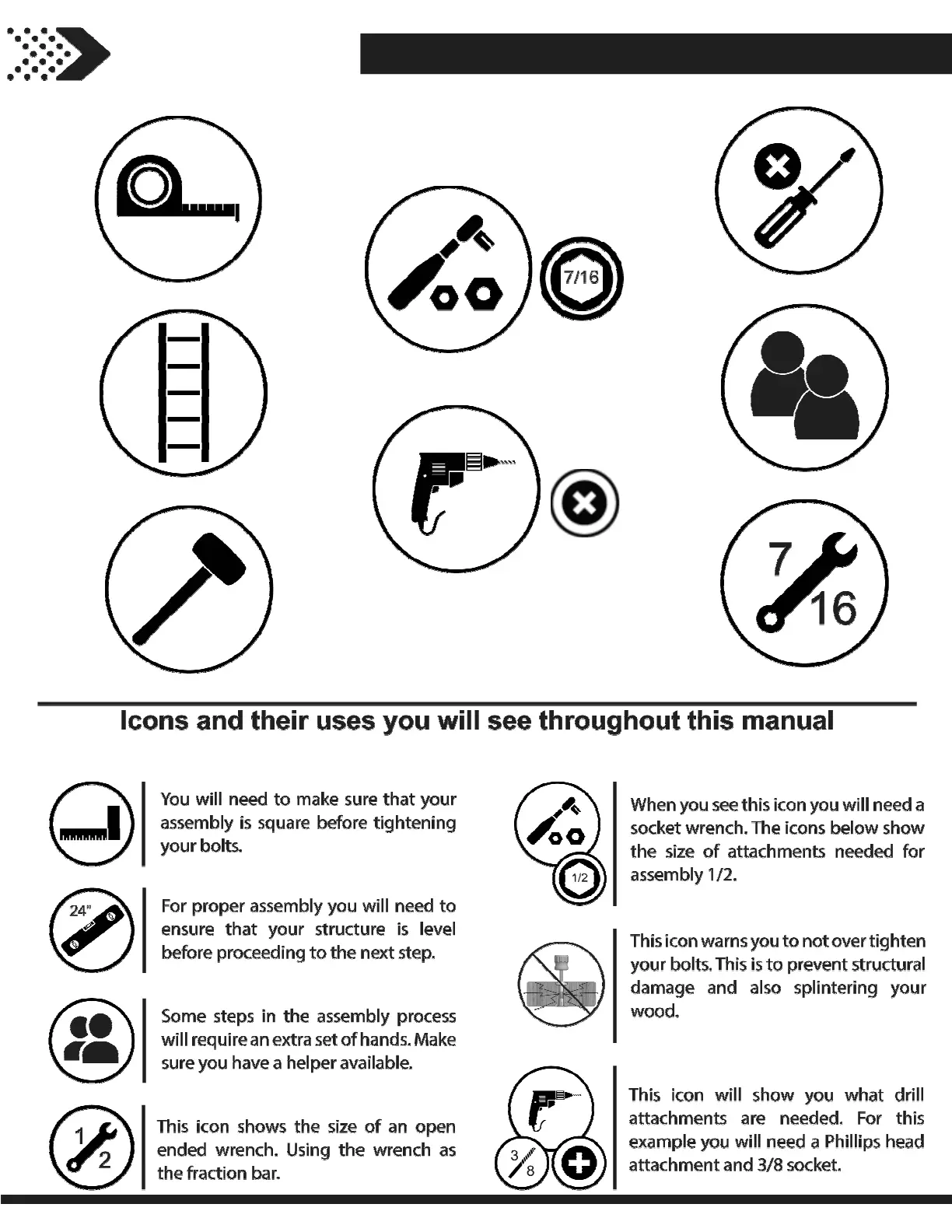 Backyard Discovery 9198074 - Tools Required for Installation; Icons and their uses